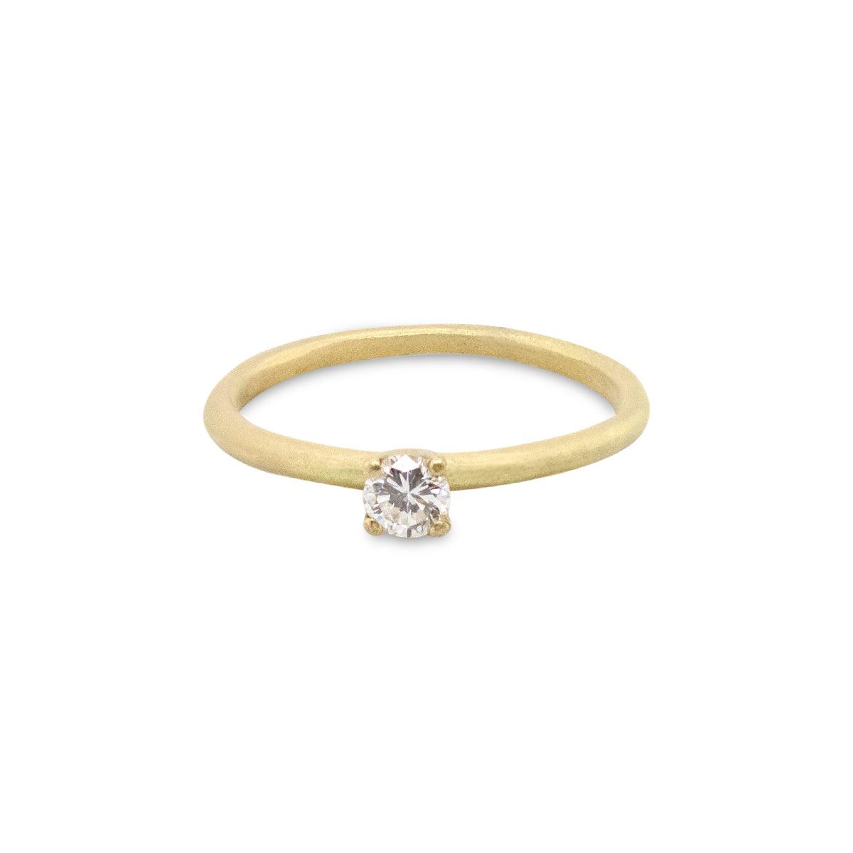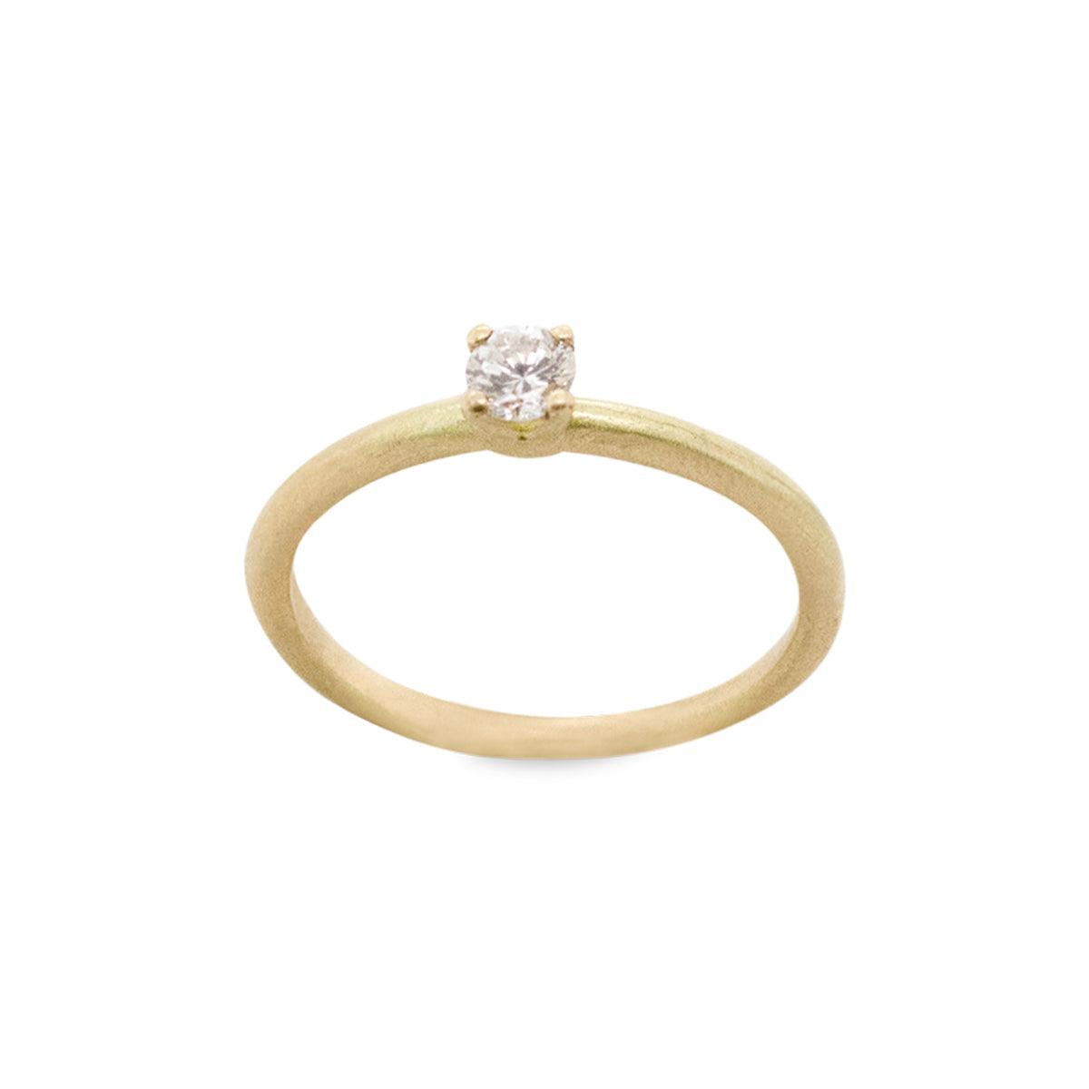 טבעת סוליטר מזהב עם ארבע שיניים המחזיקות יהלום לבן המשובץ במרכזה