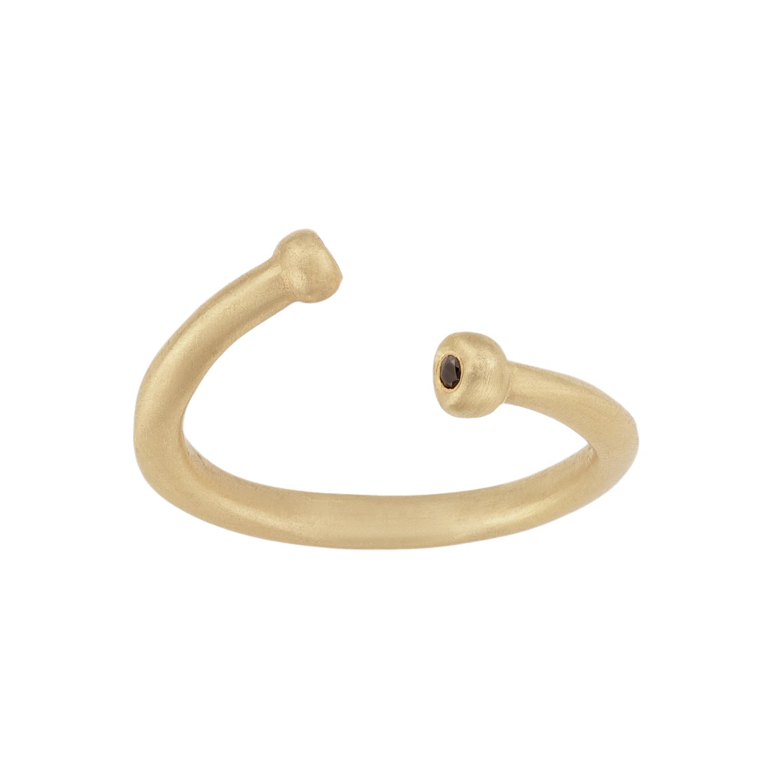 טבעת זהב פתוחה משובצת שני יהלומים שחורים בקצוות
