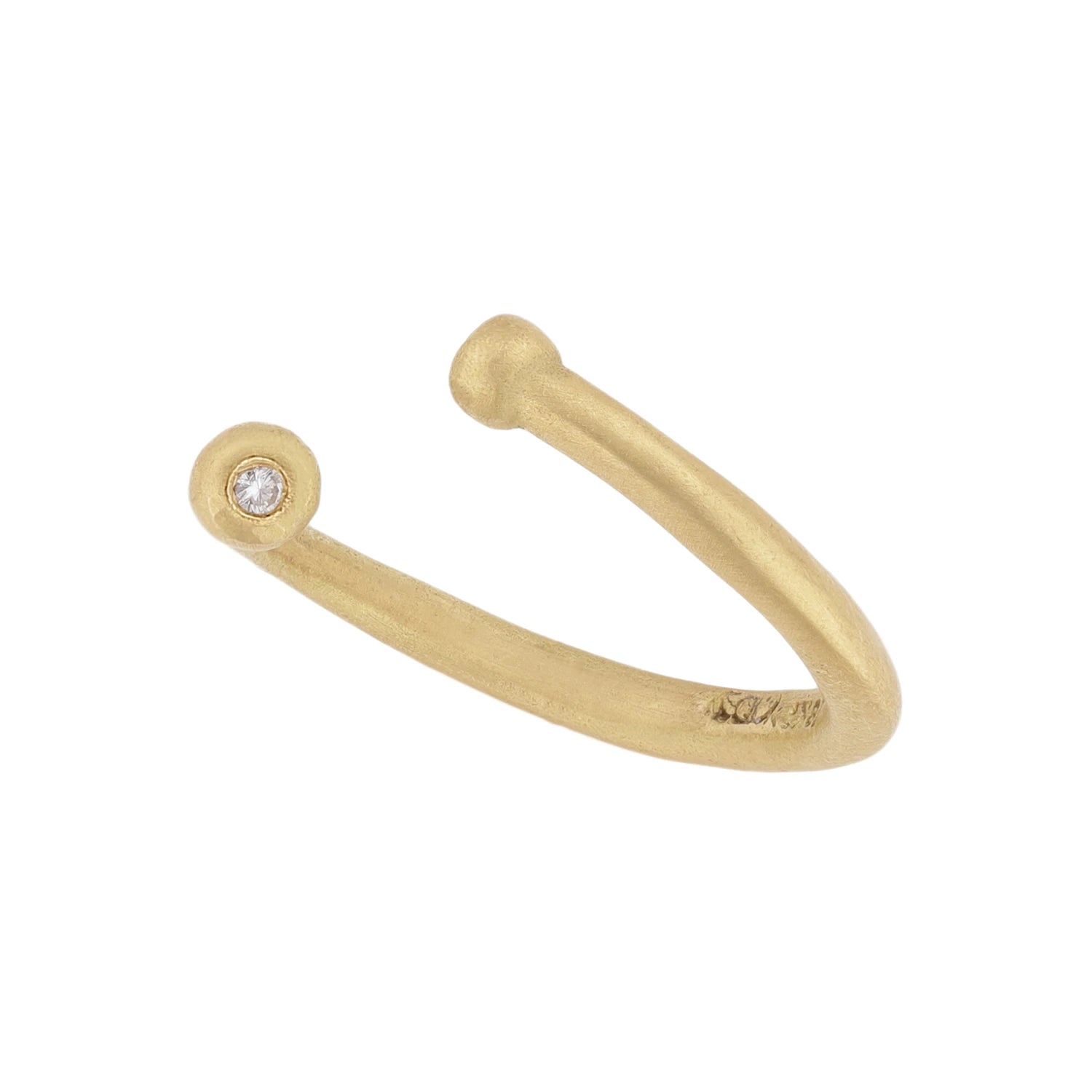 טבעת זהב פתוחה משובצת שני יהלומים בקצוות