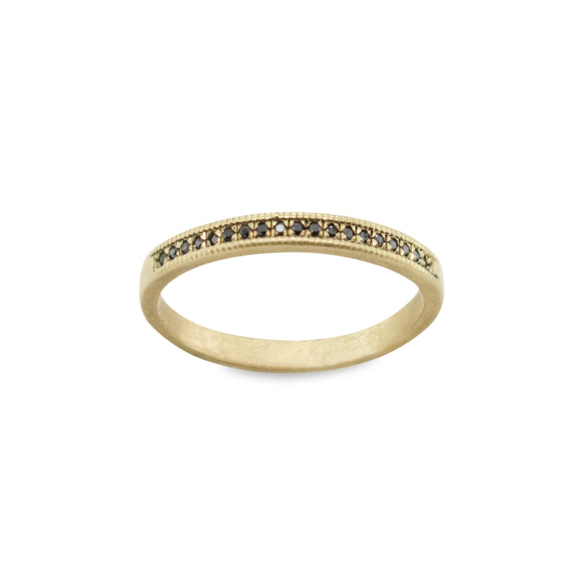 טבעת צרה מזהב משובצת יהלומים שחורים
