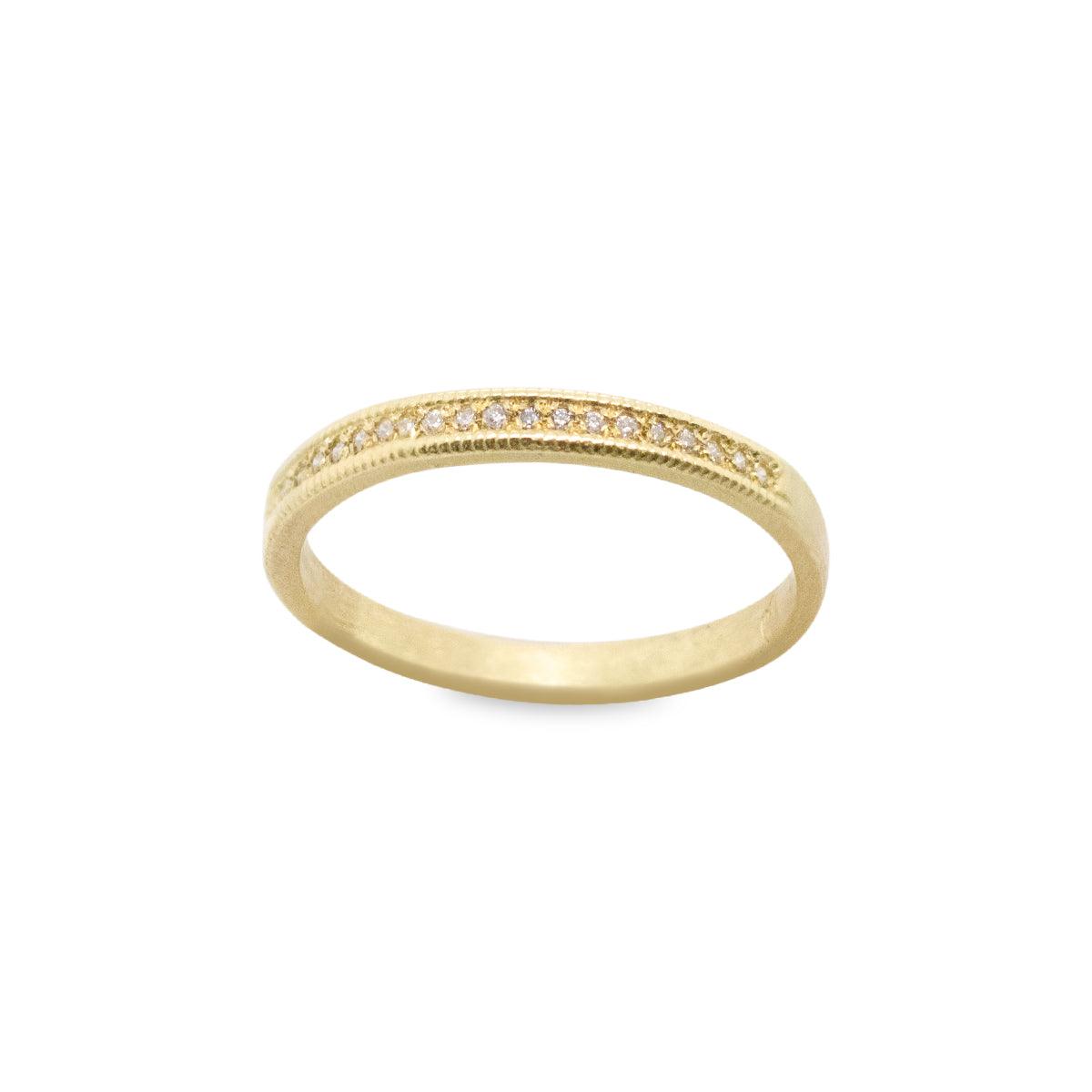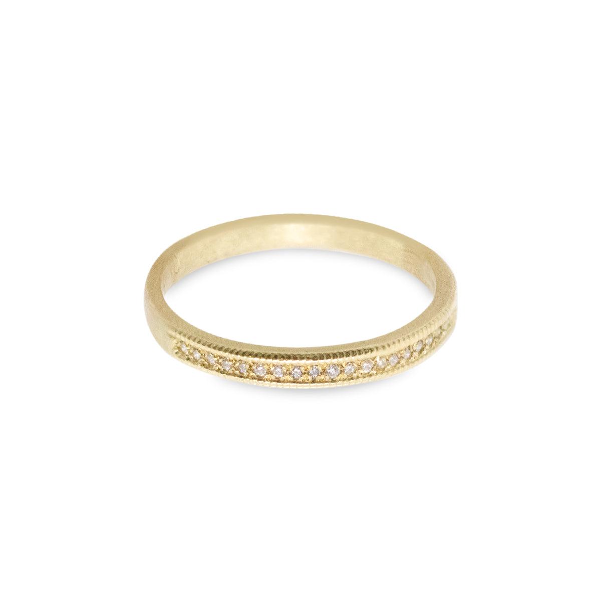 טבעת צרה מזהב משובצת יהלומים שחורים