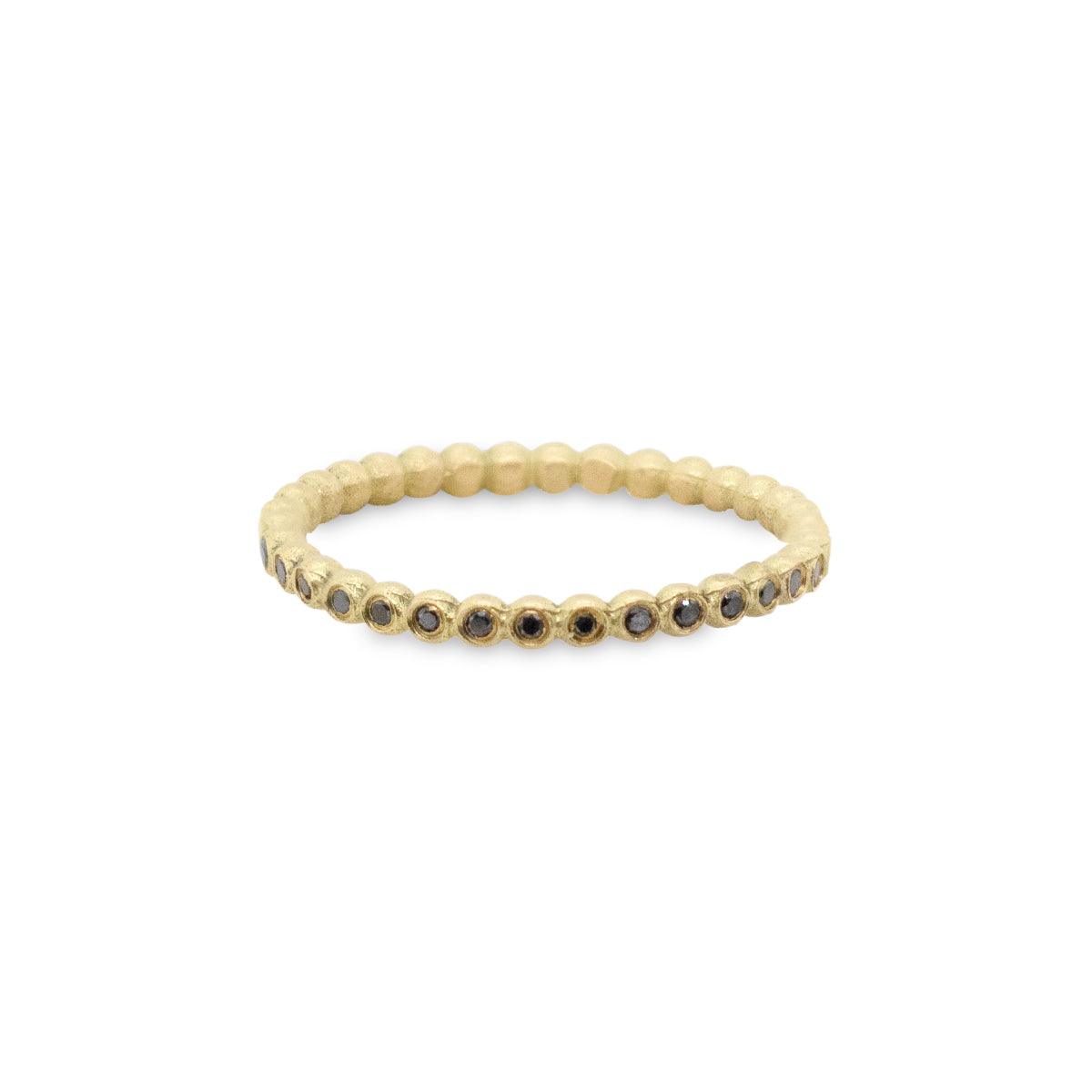 טבעת בפרופיל כדור משובצת יהלומים שחורים