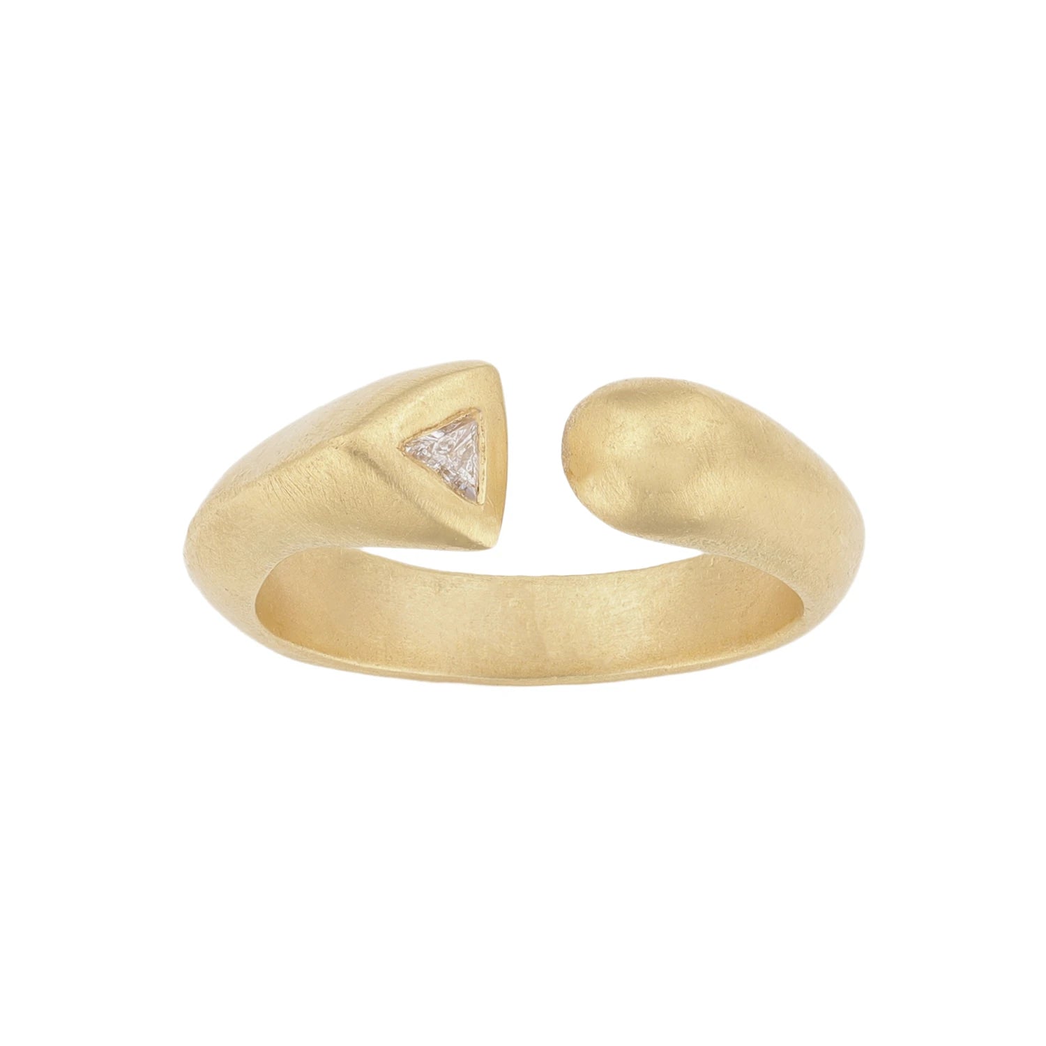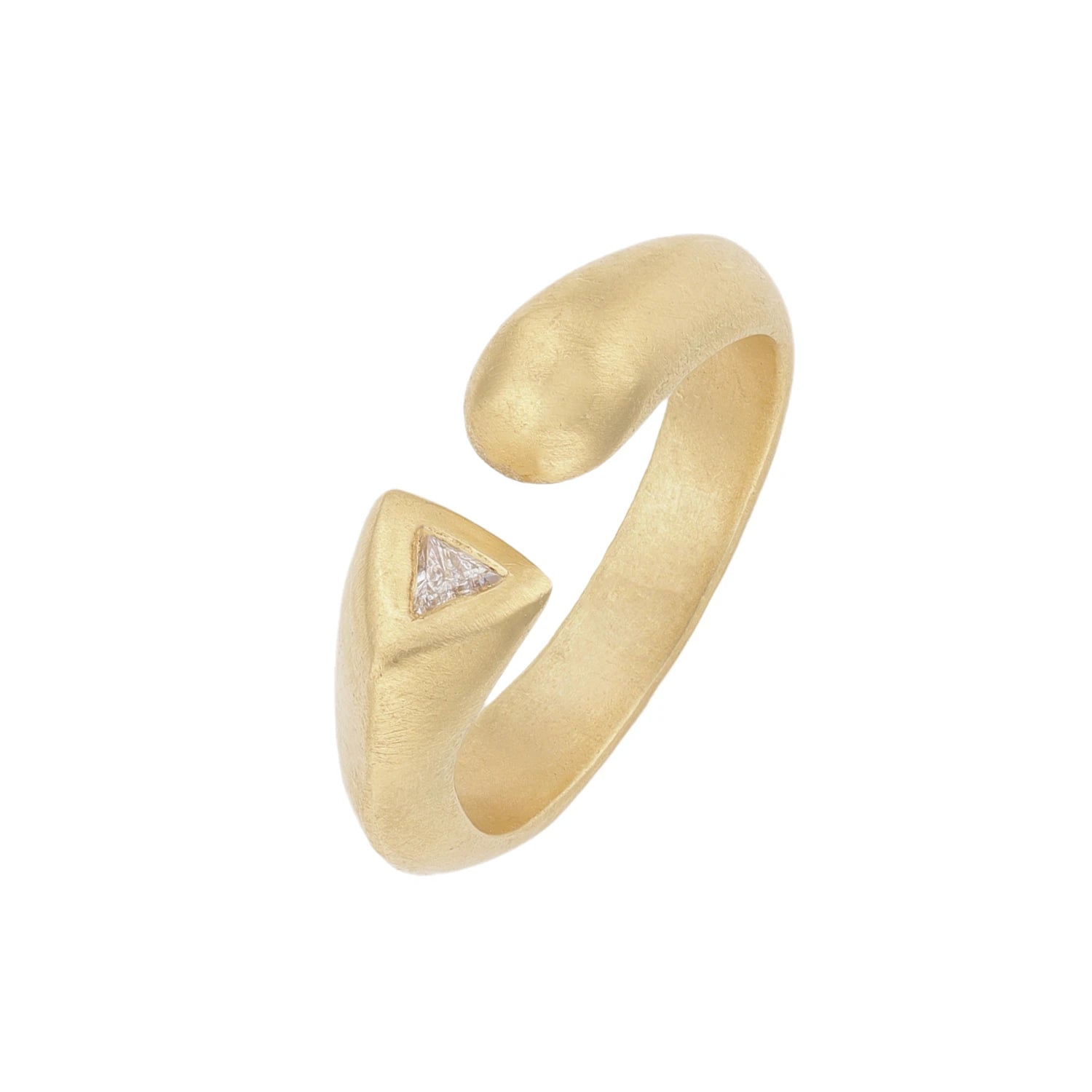 טבעת זהב פתוחה משובצת יהלום בצורת משולש בחלק העליון