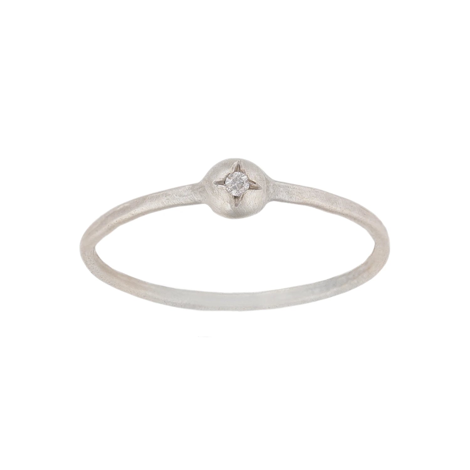 טבעת זהב לבן דקיקה עם רימון עגול קטן מוגבה משובץ יהלום