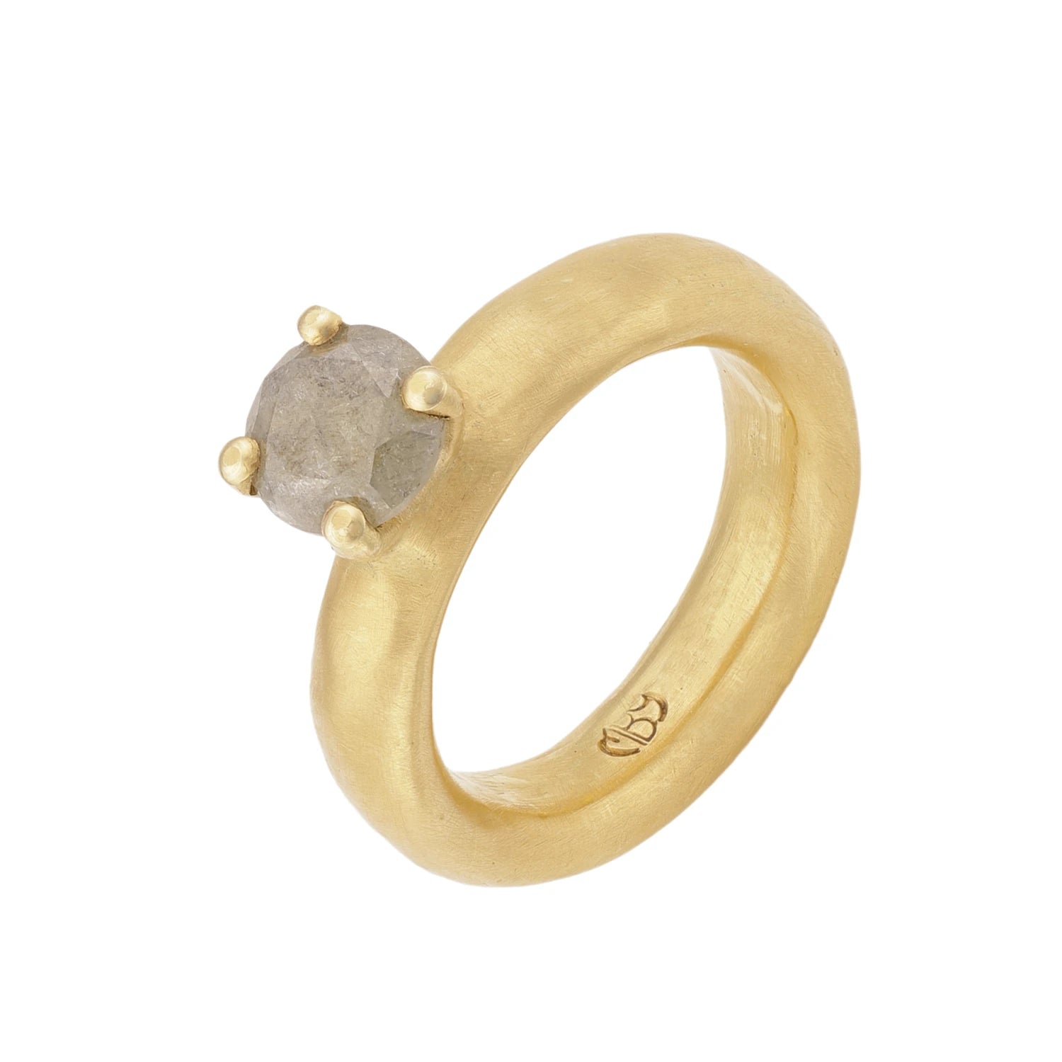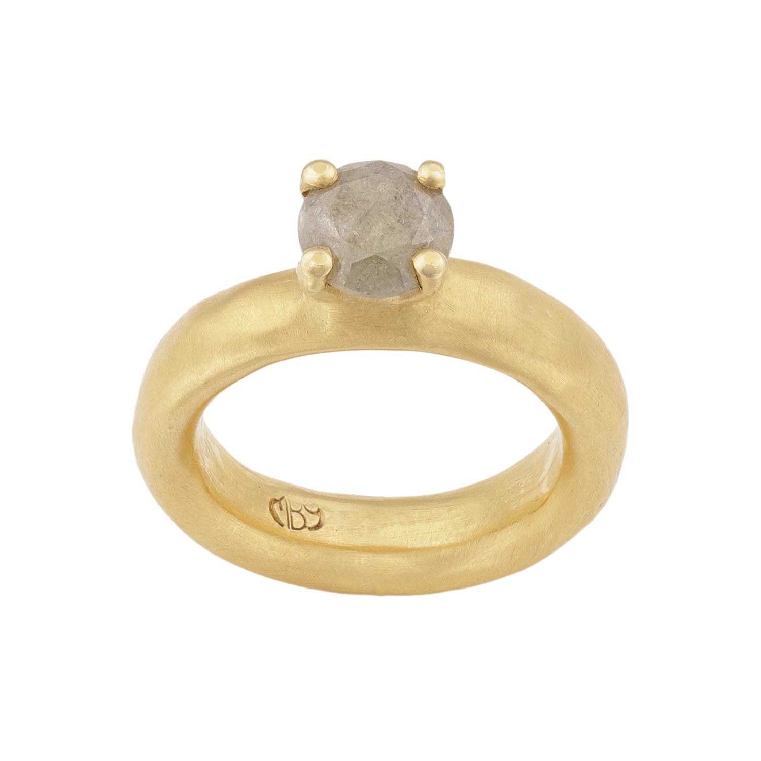 טבעת סוליטר עם יהלום גולמי אחוז ב 4 זרועות
