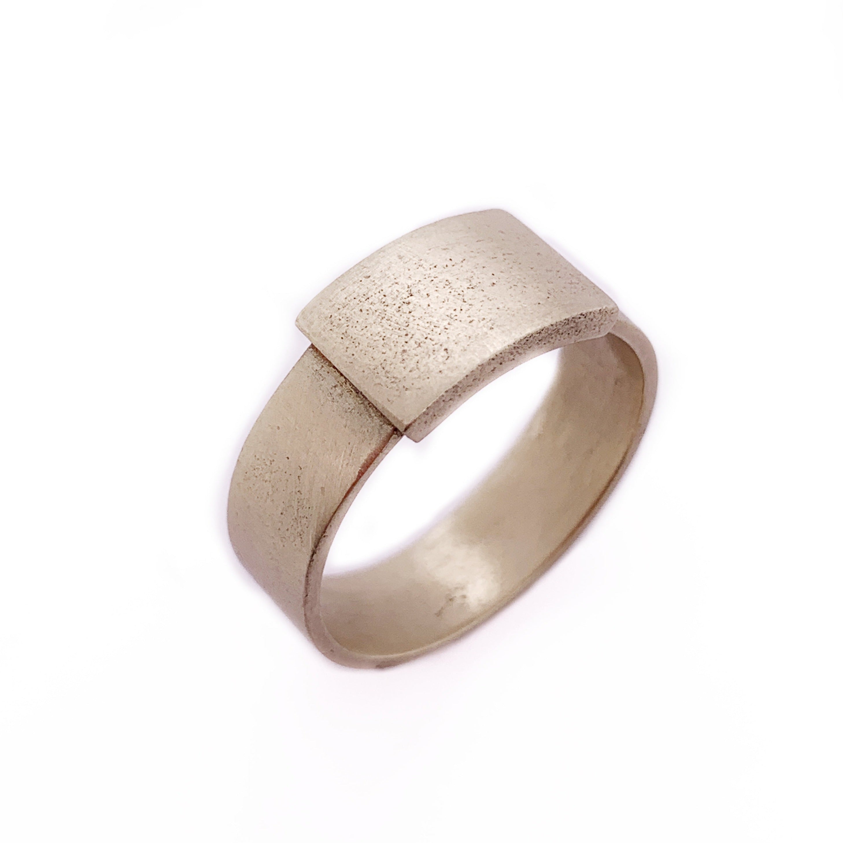 טבעת נישואין מזהב לבן עם מלבן מוגבה