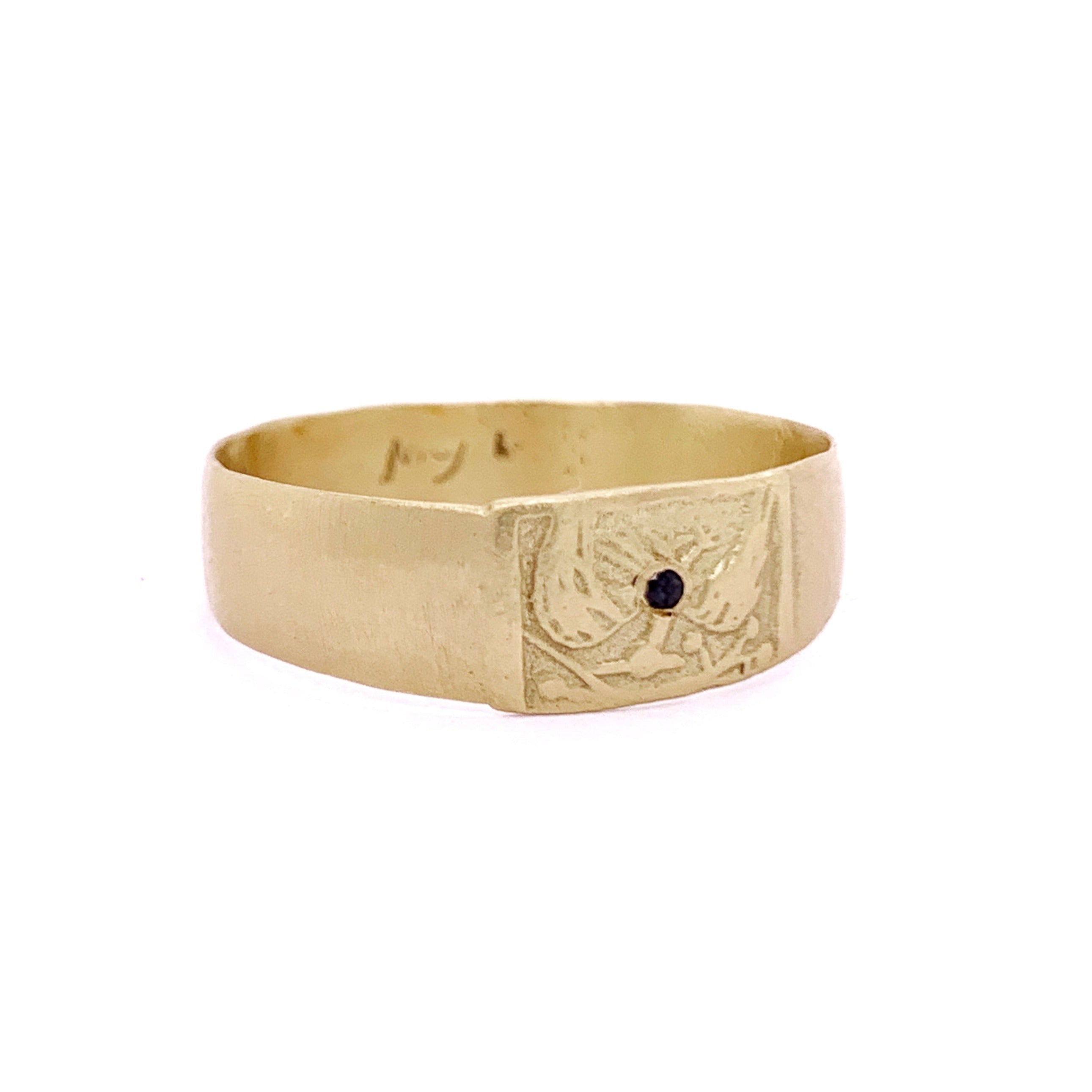טבעת נישואין עם יהלום שחור משובץ בדוגמה עתיקה