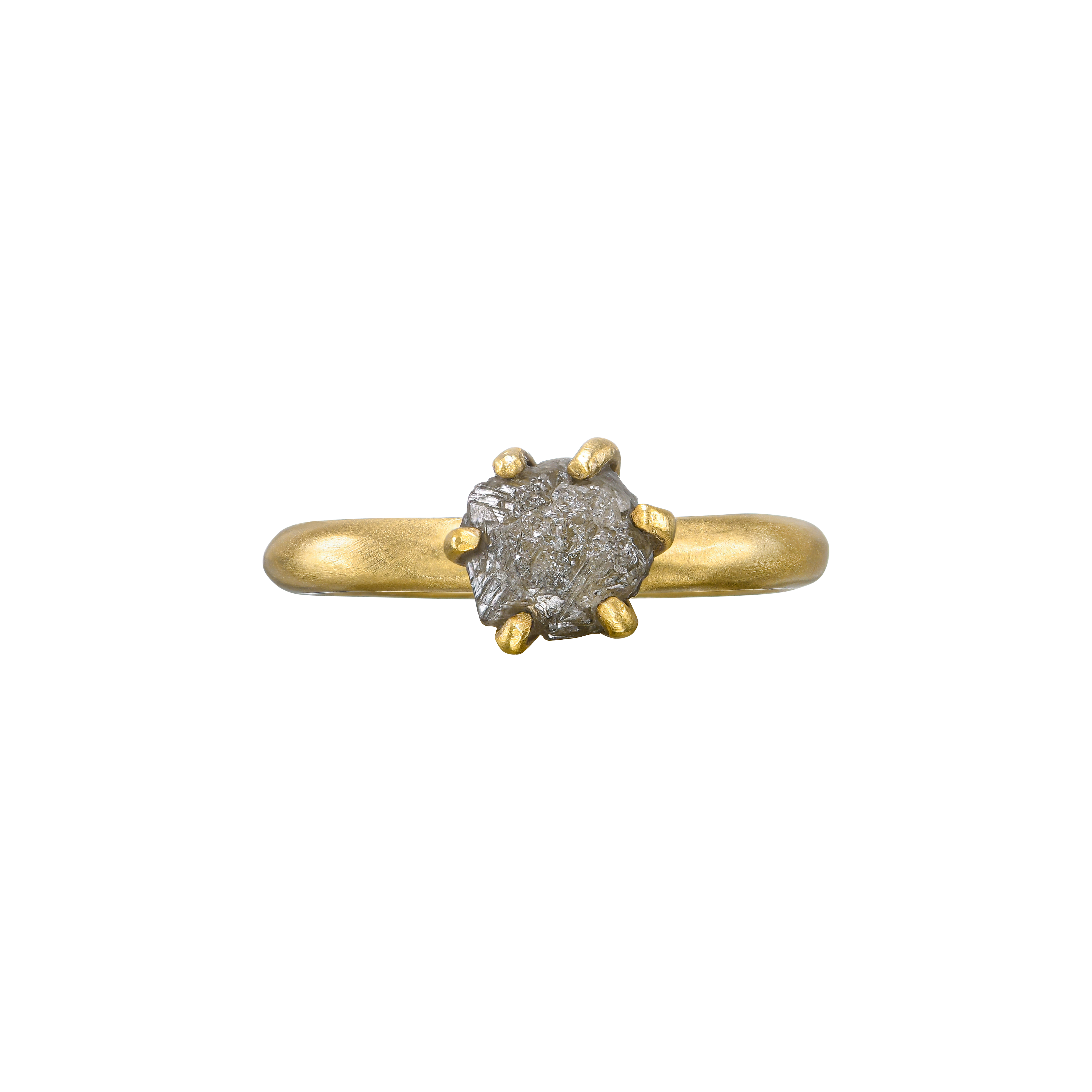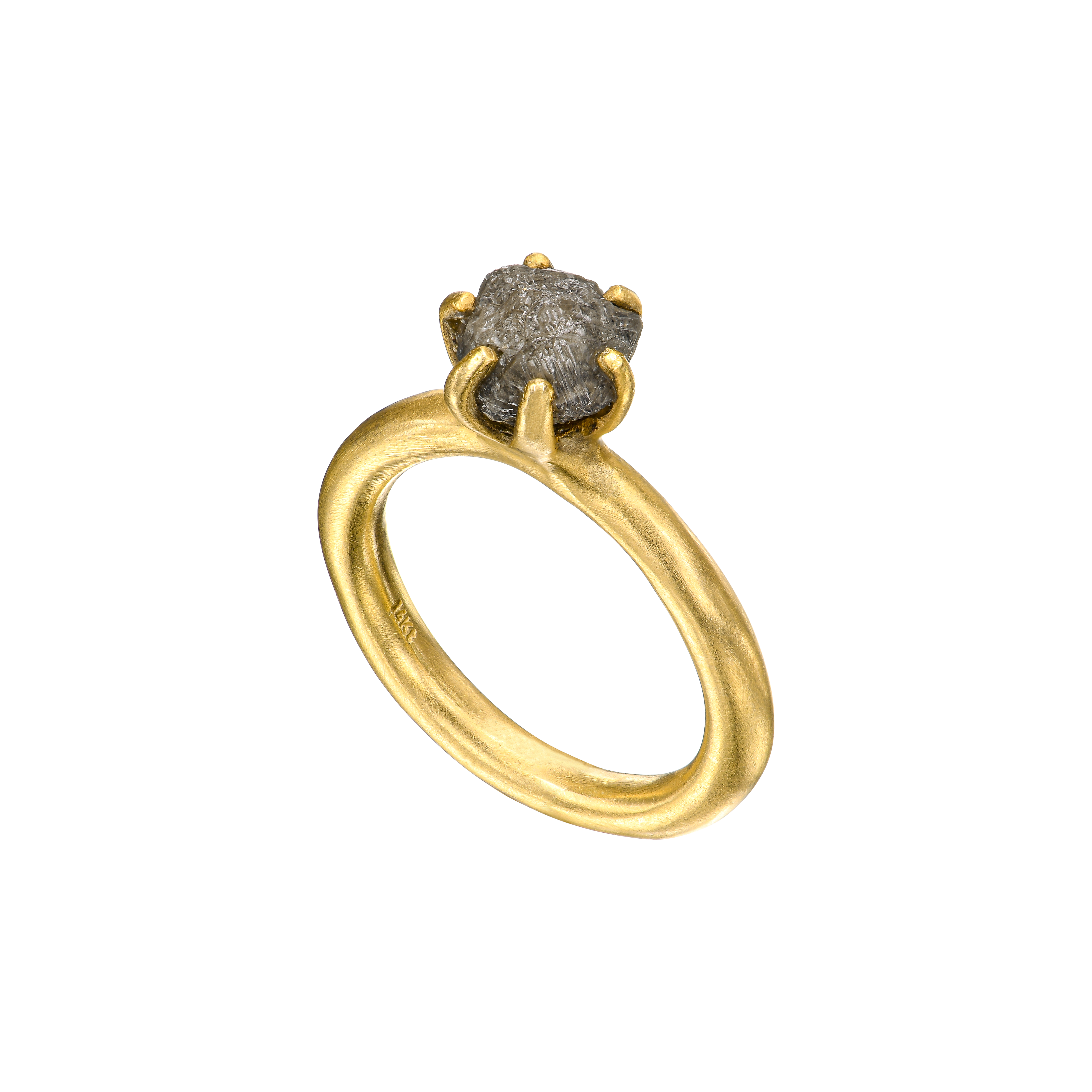 טבעת משובצת יהלום אפור 2.26 קראט ומסביבו שש שיני זהב.