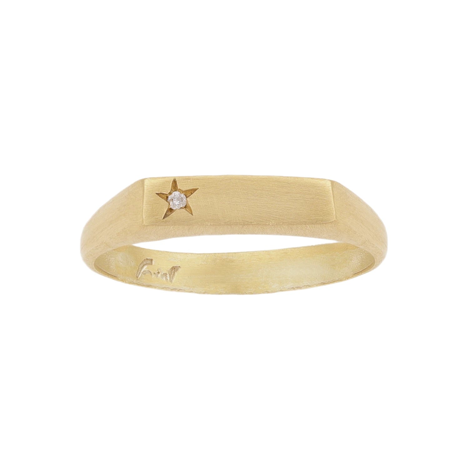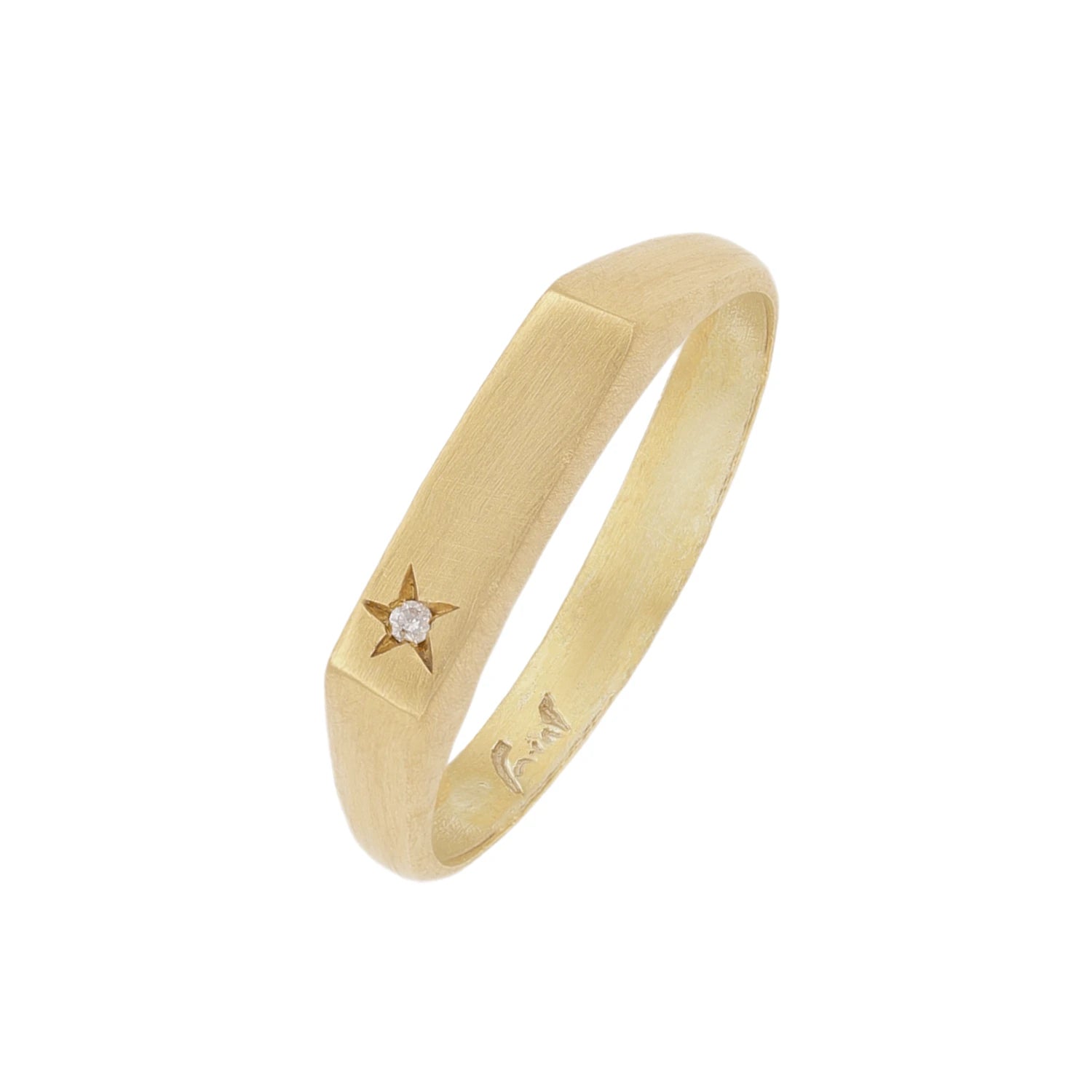 טבעת חותם עם מלבן מוגבה וכוכב משובץ יהלום