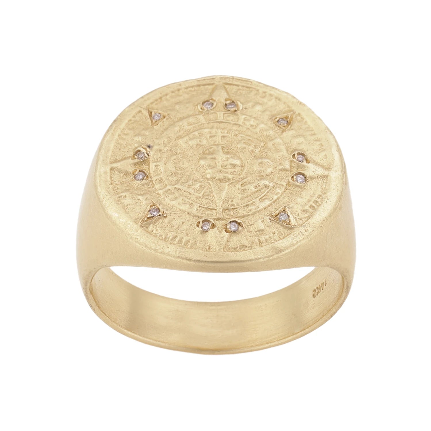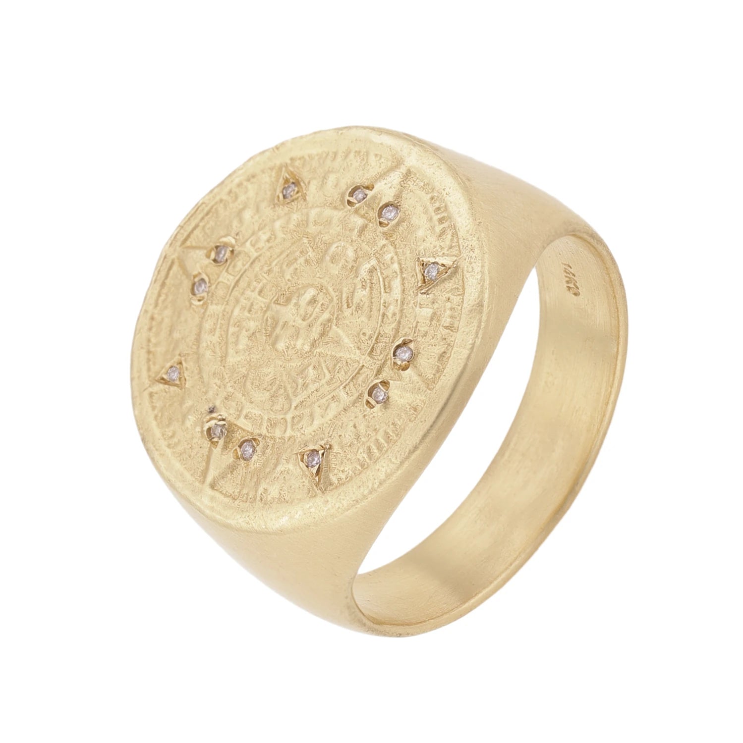 טבעת חותם מקסיקנית מזהב משובצת 12 יהלומים לבנים
