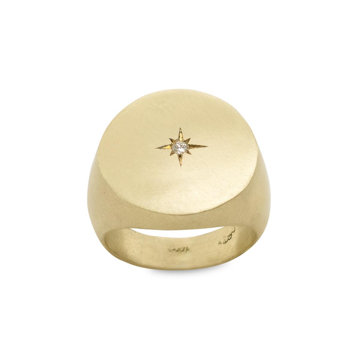 טבעת חותם מזהב עם חריטה בזהב של כוכב הצפון, משובץ יהלום