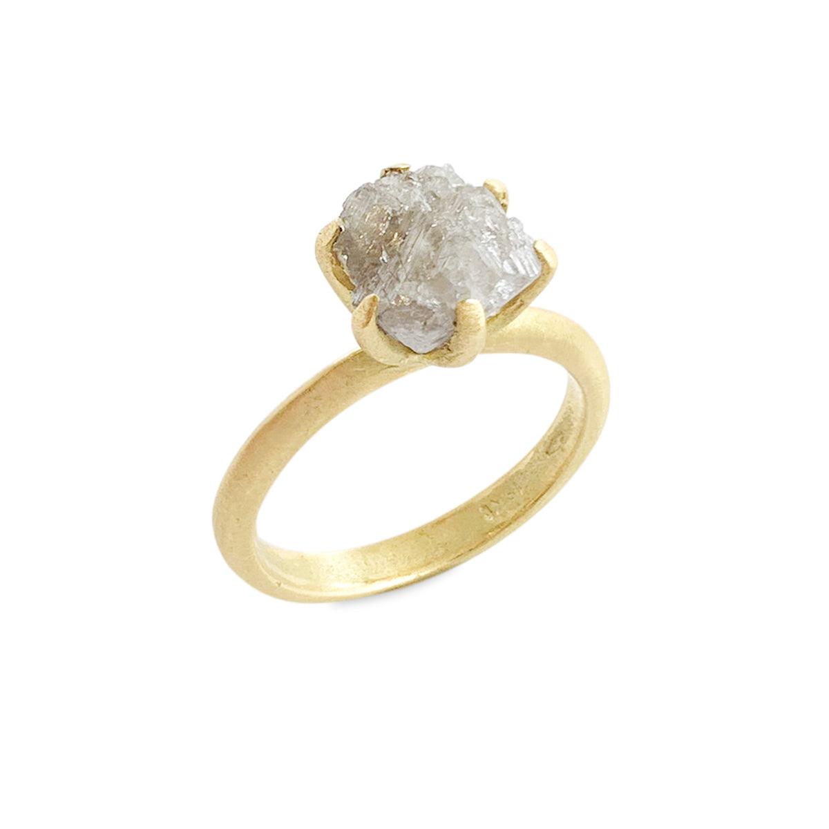 טבעת משובצת יהלום גולמי 2.26 קראט ומסביבו שש שיני זהב