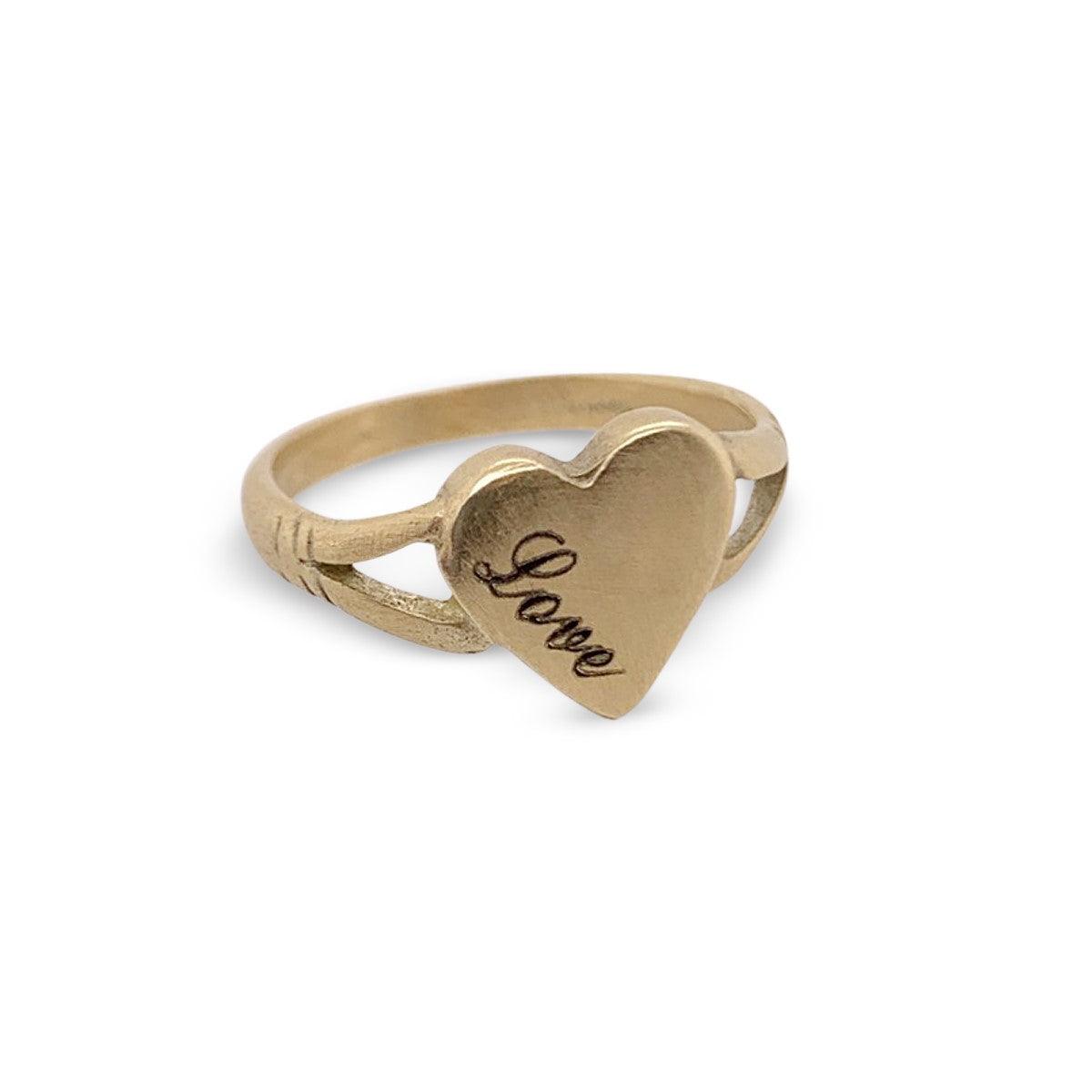 טבעת לב חותם עם חריטה של המילה אהבה