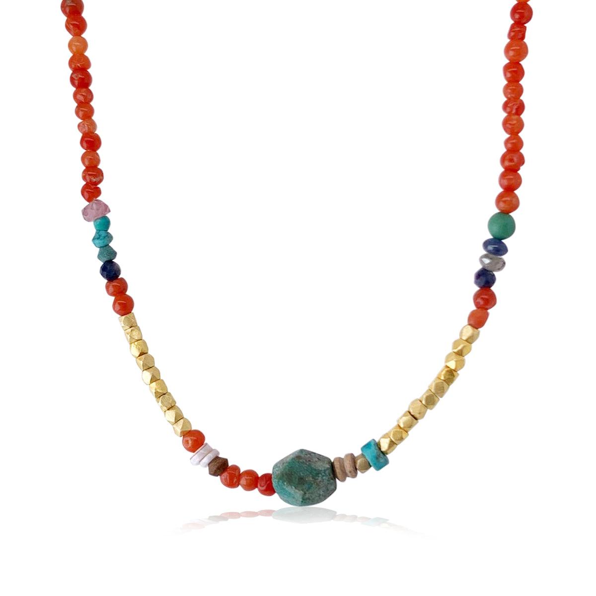 שרשרת חרוזים יפיפיה עם חרוזי אלמוגים וחרוזי וזהב