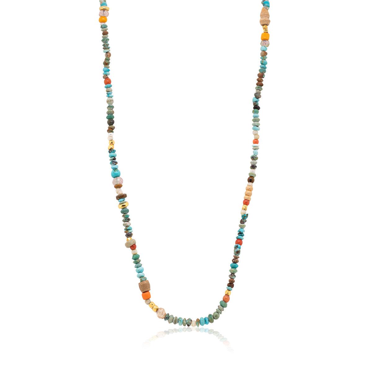 שרשרת חרוזי טורקיז אוזבקית קטנטנים עם חרוזי מוזס זהב צהוב 18 קראט