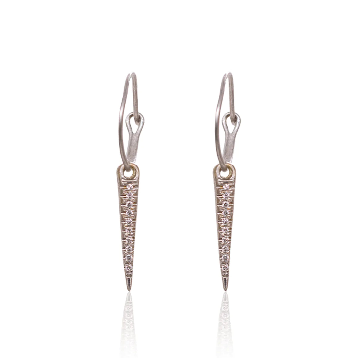 עגיל ג׳יפסי מזהב עם תליון קונוס צר משובץ 10 יהלומים