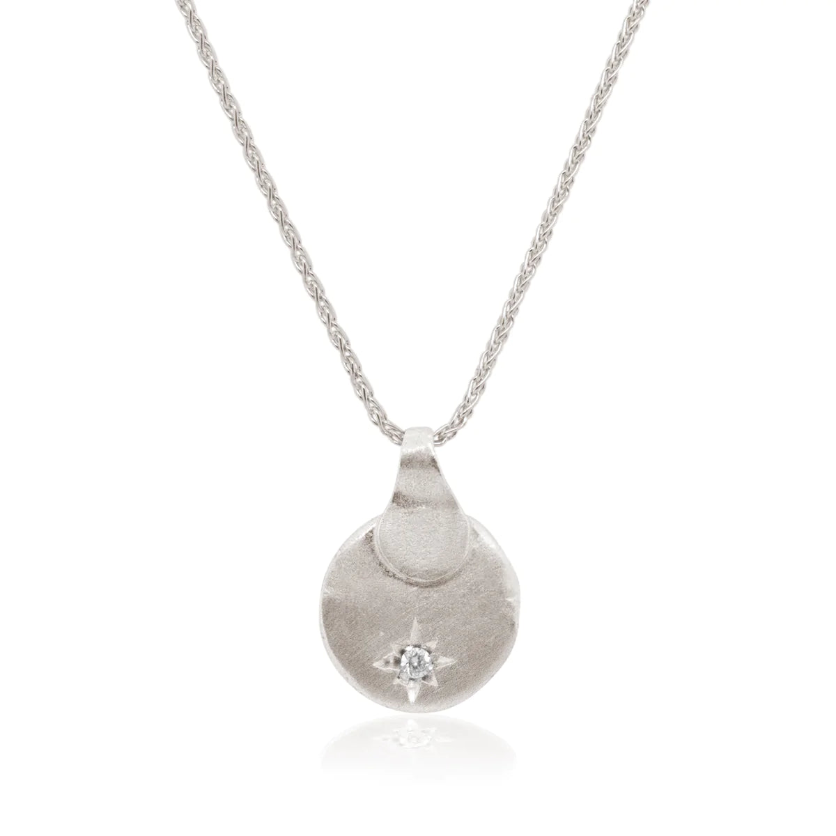 שרשרת זהב לבן עם תליון בצורת פיתה משובץ יהלום לבן בצורת כוכב צפון