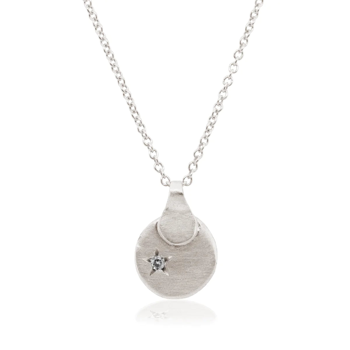 שרשרת זהב לבן עם תליון בצורת פיתה משובץ יהלום שחור בצורת כוכב צפון